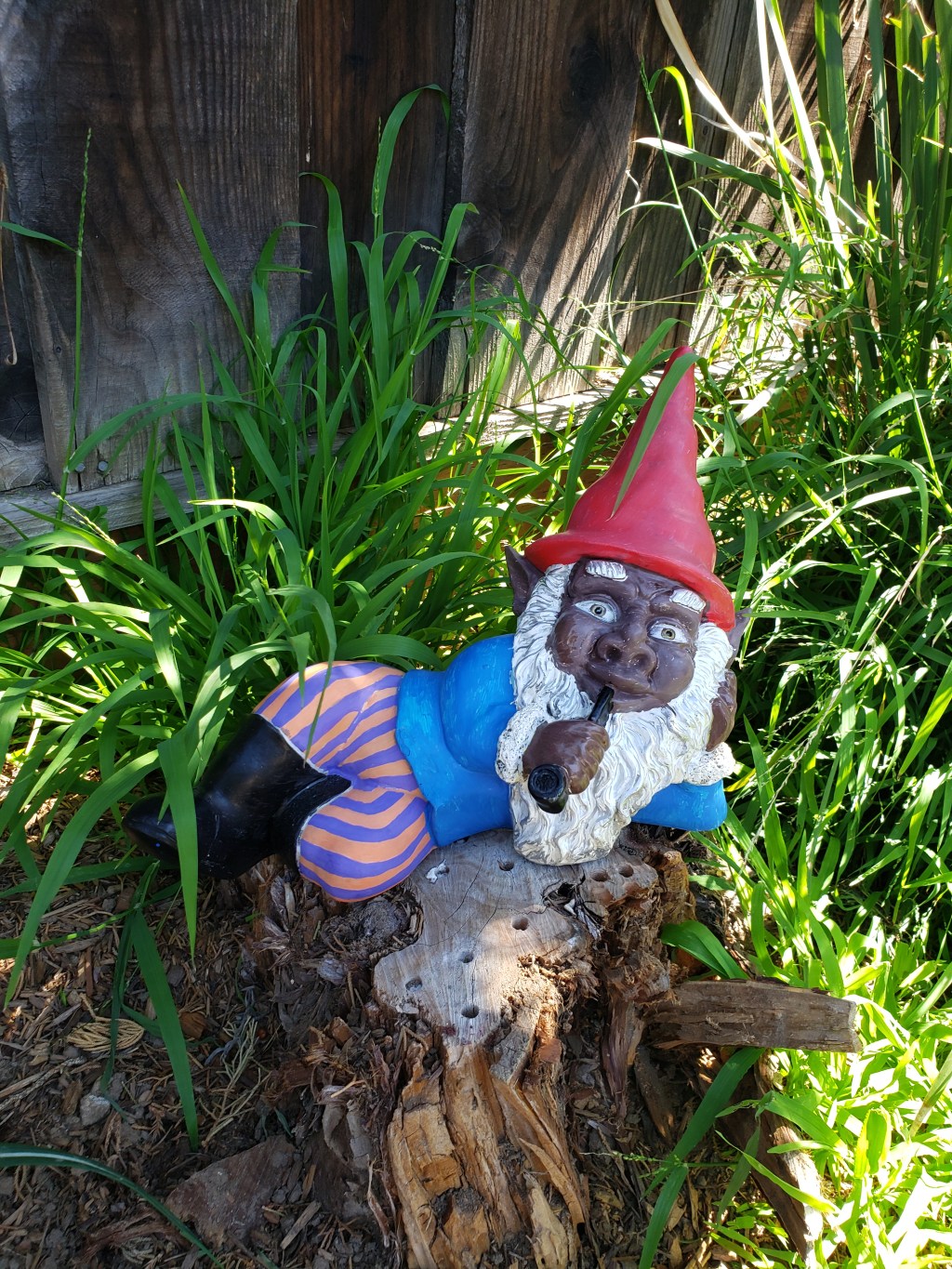 The gnome had come out…different. Pale chipped cheeks had been warmed to a nut brown, the beard streaked with silver. The vibrant red cap and cobalt coat were restored, now paired with eccentric pinstripe pants in alternating orange and purple. His saccharine smile had a certain wickedness, and his amber eyes gleamed a little too knowingly.